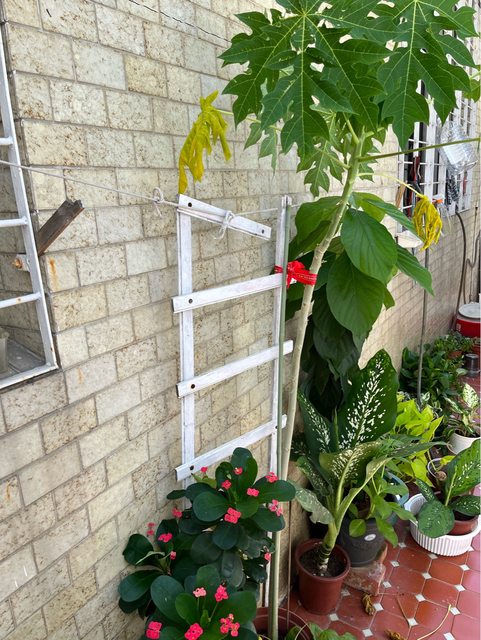 木瓜樹含紅色花盆150元