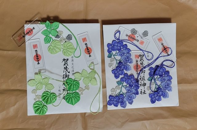 六月二十日 剛買到的葵葉與紫陽花 御守,保存得很好,希望 有櫻、雪、楓 御守的朋友