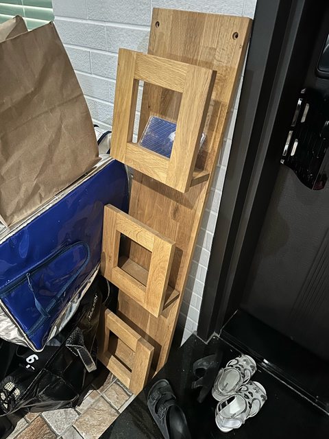 標題[交易] 贈送木頭壁架,垃圾桶架