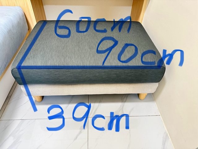 材質沙發上層是LY的布,下層是LY的皮。長約90cm,寬約60cm,高約39cm。耐磨防刮防潑