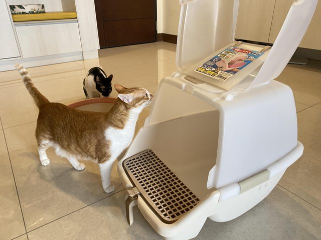 貓砂盆都已經用消毒水泡過也刷洗過,都還算乾