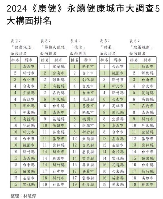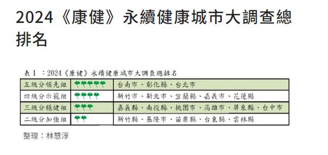 臺南市在2024年《康健雜誌》「永續健康城市大調查」競爭