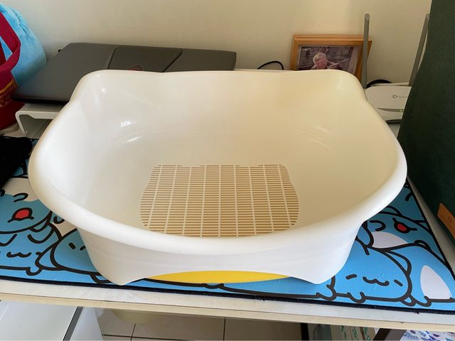 老公看盆子漂亮就衝動購物,結果跟我們現在用的貓砂不符,這個可能比較適合崩解型的