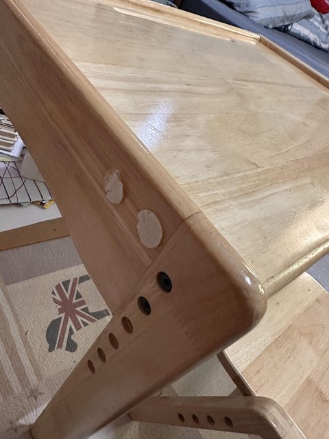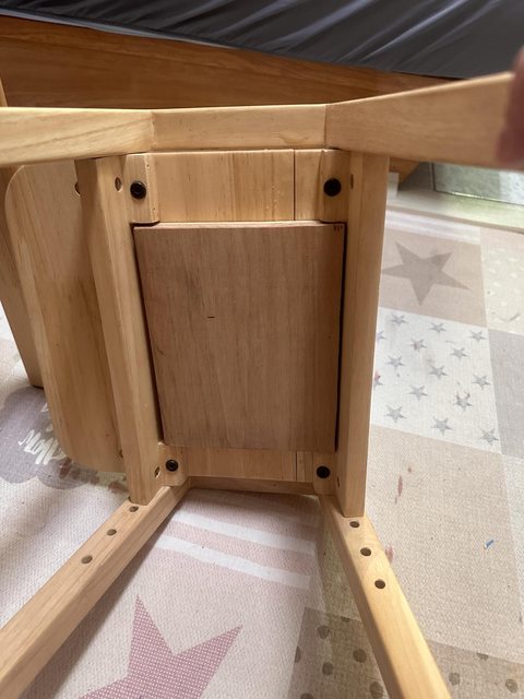 椅子有被小孩坐斷裂、底下用木板補強