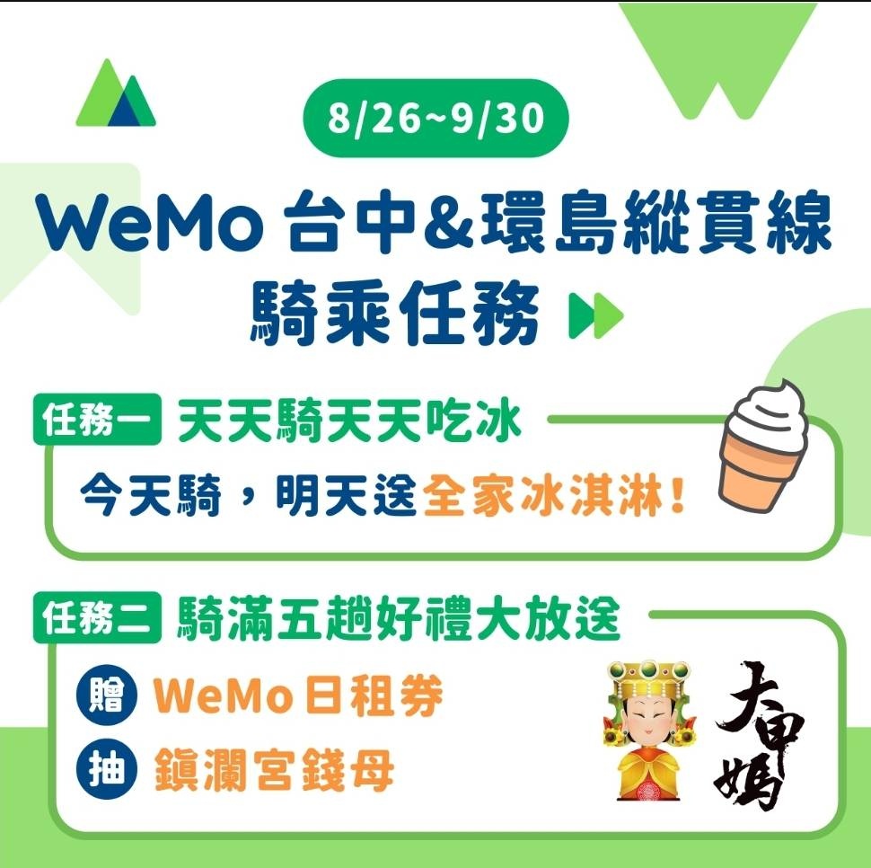 方便、綠能的交通移動服務,業者相關優惠活動請上WeMo官網或APP。交通局也呼籲民眾
