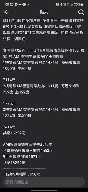 → bailan: 沒自己記錄電錶指數,收到單後覺得異常也可以馬上去對一下 09/21 13:12