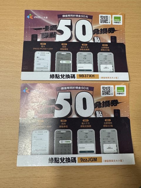 贈送演唱會門票兌換一卡通綠點兌換碼50點