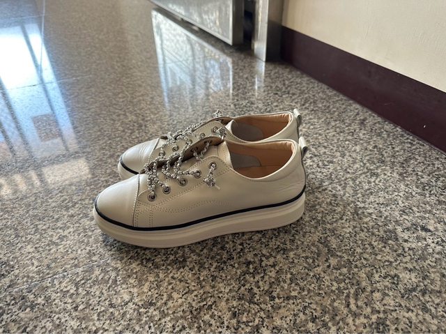 於今年8月於專賣店購入,因鞋子太多穿不到故想售出,小白鞋搭配鏈條造型不用綁鞋帶