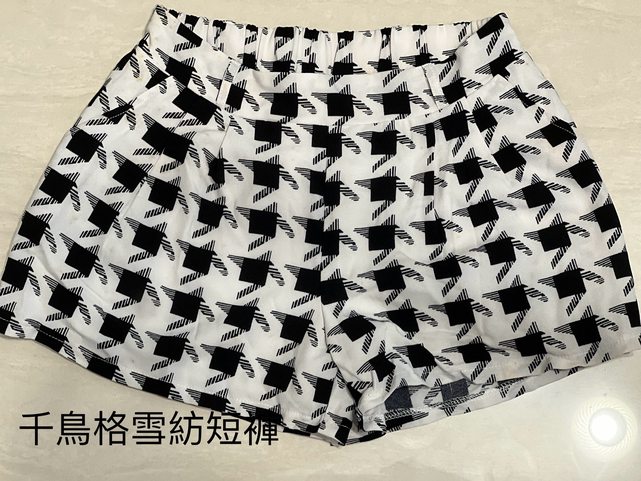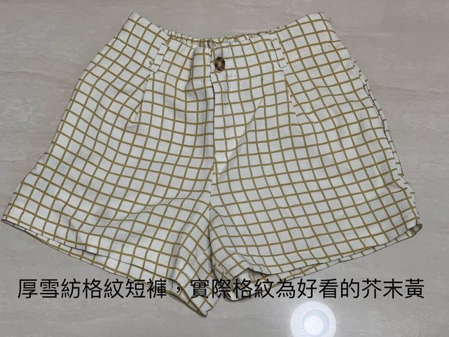 22.厚雪紡格紋短褲(格紋芥末黃很好看,室內暖黃光關係照片有色差) $65