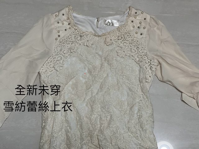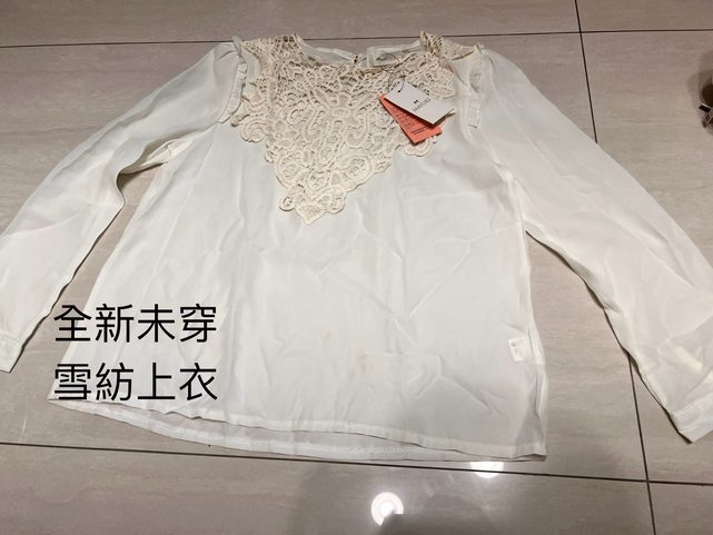5.全新未穿-胸口蕾絲雪紡上衣 $80