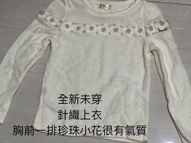 10.全新未穿-珍珠小花微鏤空針織上衣 $90