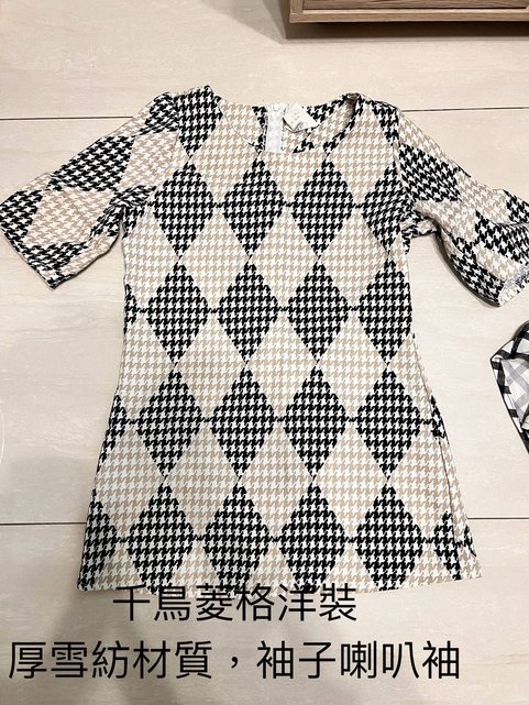 20.千鳥菱格小洋裝(喇叭袖、厚雪紡材質,樣式很特別) $80