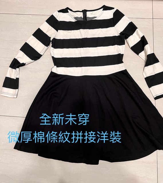 17.全新未穿-微厚棉條紋拼接洋裝(材質好!) $90