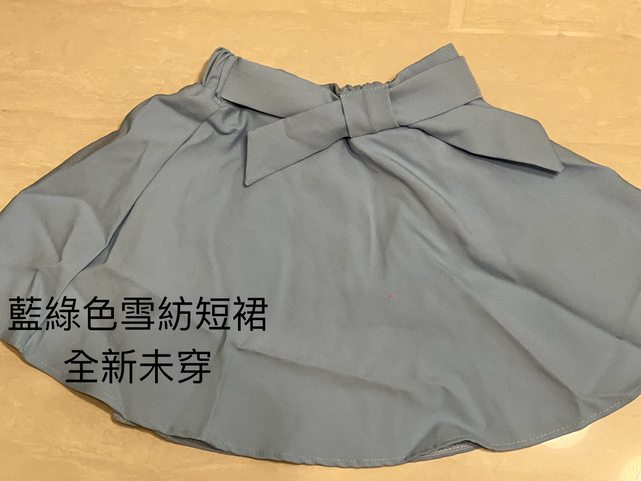 24.全新未穿-藍綠色雪紡短裙(實體好看的藍綠色,室內暖黃光關係照片有色差) $70