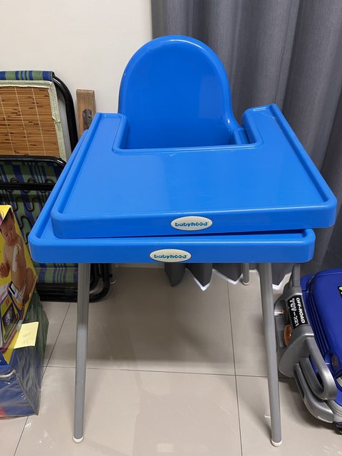 2.藍色直立式餐椅,babyhood 賣200元