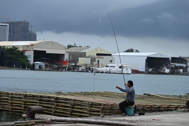 也有民眾把握放颱風假好機會,到港邊垂釣,雖然久久釣不到魚,但享受的是那著說不出