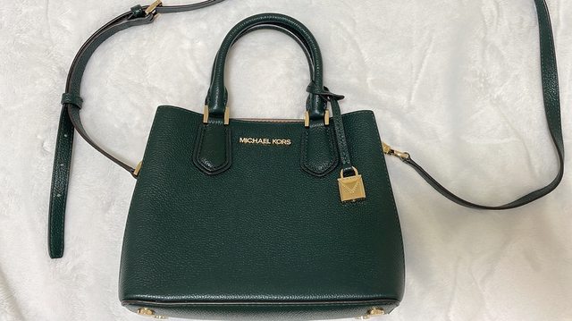 2.綠色皮革側背手提包 $5000