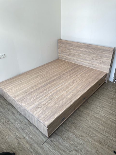 有插頭與小夜燈功能的雙人床架,底部雙側各有3個抽屜可做收納。價格$1500