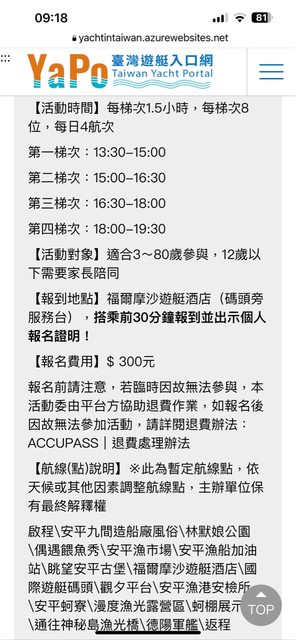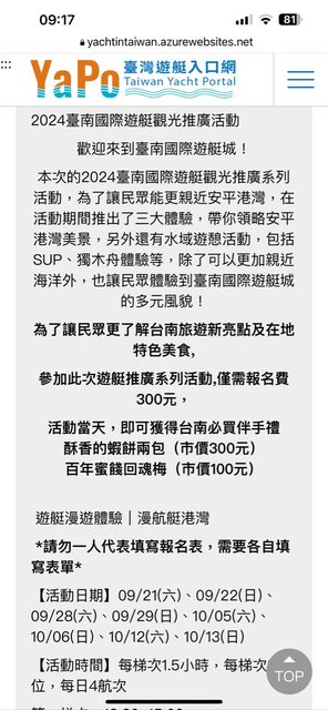 標題[交易] (已轉讓)10/13慢艇遊港灣體驗活動