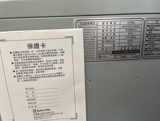 標題[交易] 全新櫻花全平面落地式烘碗機 Q7692L