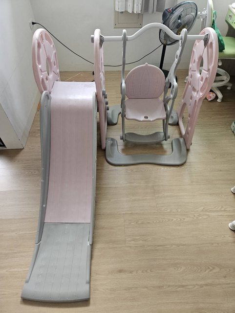 滑梯鞦韆組,有使用痕跡,滑梯步階處有小孩作畫痕跡,介意者勿喊。