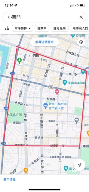 地點: 以小西門鄰近區域為主,南區健康路至中西區民生路,如圖所示