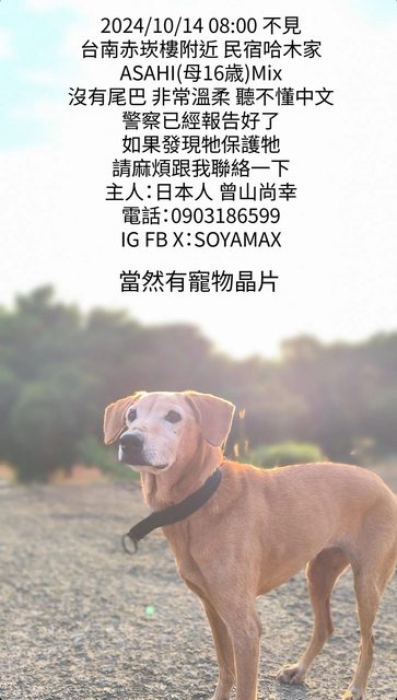日本人朋友的狗在赤崁樓附近走失了