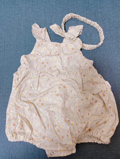 2.《泰國手工雛菊卡其包屁衣+髮帶》