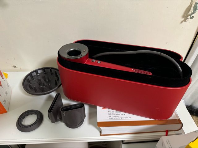 壞掉的Dyson吹風機跟他的盒子以及吹頭們