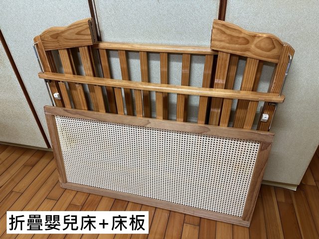 標題[交易] 免費贈送二手折疊嬰兒床+透氣藤板