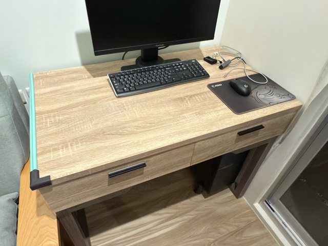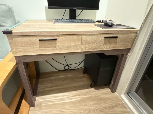 交易物品/金額/說明: 自用一手兩抽屜書桌,狀況良好,近九成新,長100cm,寬60cm,
