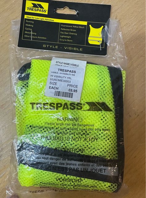 2. trespass 黃色背心150元 英國購入(晚上運動避車)