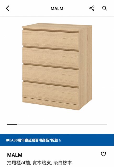 2. IKEA MALM 抽屜櫃 4抽*1: $2,500
