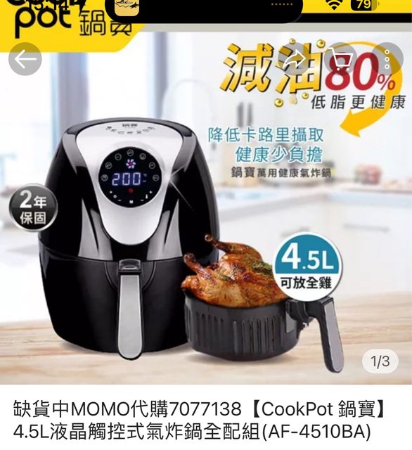 5. 氣炸鍋 鍋寶 AF 4510BA*1: $1,500