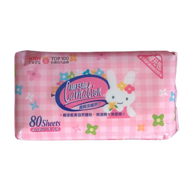 (9) 康乃馨 寶寶潔膚濕巾 超厚型80片 8包250元
