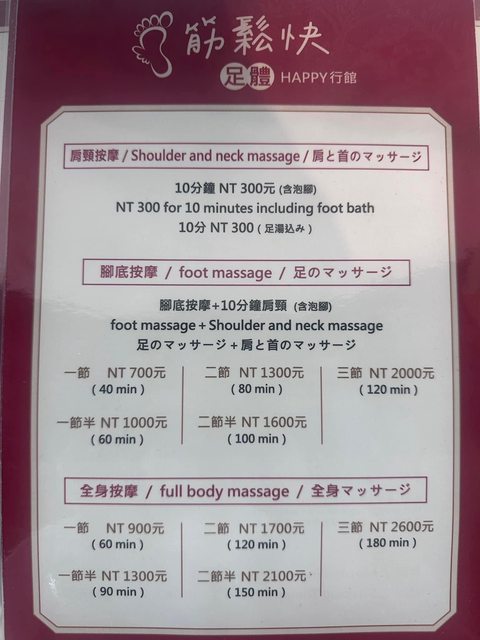 標題[自家] 安平-筋鬆快足體按摩Happy行館