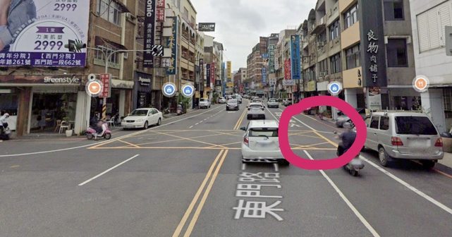 事故:兩台機車擦撞。對方突然從左邊黃網狀線直接騎出,我方仁德往台南方向直行煞車不及
