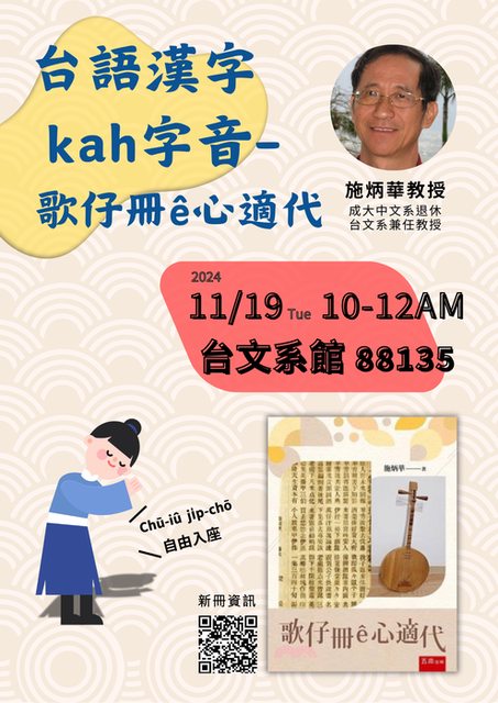 【講座】11/19 台語漢字kah字音-歌仔冊ê心適代