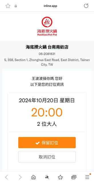 → heibe: 一份要切、大辣、加蔥、加蒜,20分鐘後拿,謝謝! 11/14 18:40