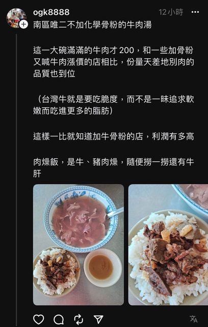 → eva19452002: 我能接受粉泡的牛肉湯,前提是價格要回饋 11/22 16:23