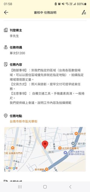 工作內容:看場域、測量、拍照、錄影 。
