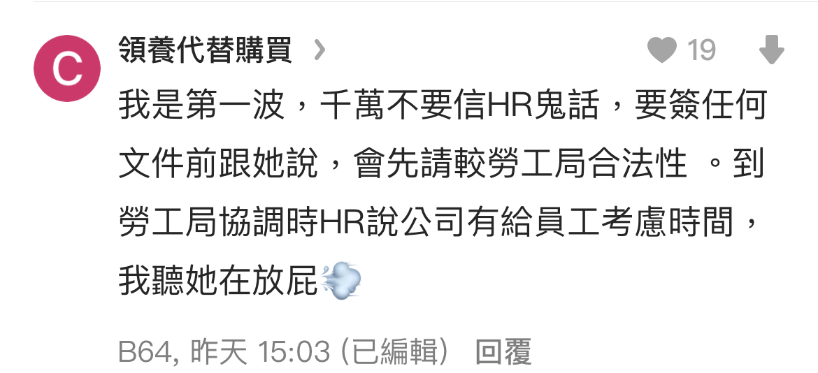 → p90735522 : 幾 貴公司人資都沒發現自己說的話很矛盾嗎 前幾天在 03/27 13:26