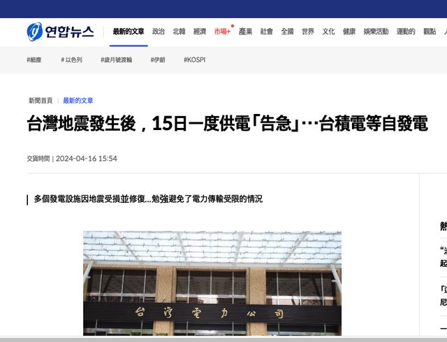標題: [爆卦] 「台灣險停電驚動台積電」登韓聯社+MBC