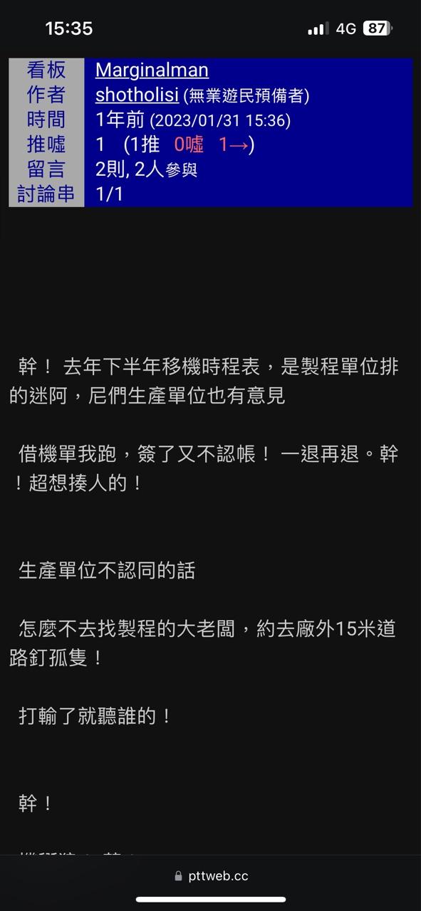 → DrTech : 就產線就是需要這種爛文化,主管說什麼你就做什麼, 05/07 00:05