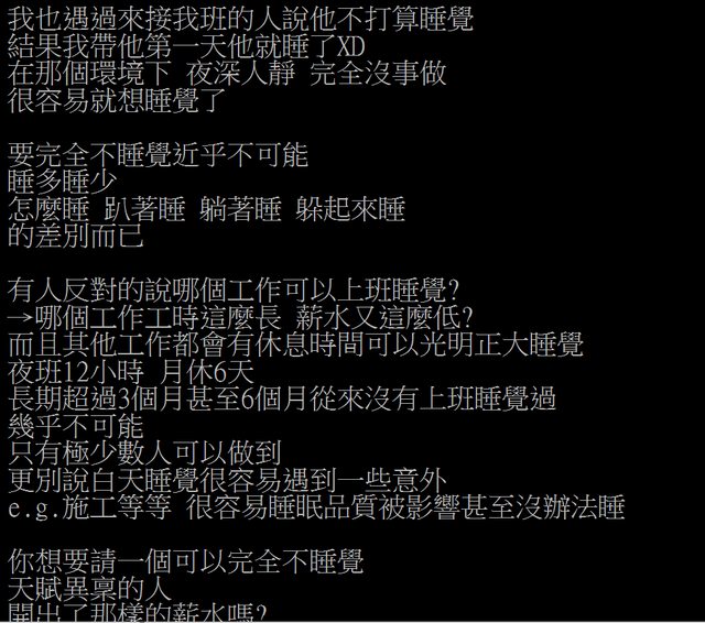 → king123 : 其他夜班工作不用討論因為也不可能180.177.226.152 09/29 12:04