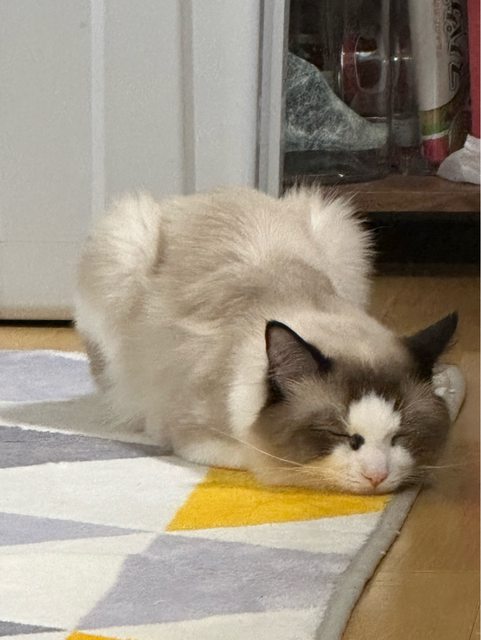 送養人說是布偶但毛好像沒有網路圖那麼多,不知道是不是混血,可愛又乖,只能說品種