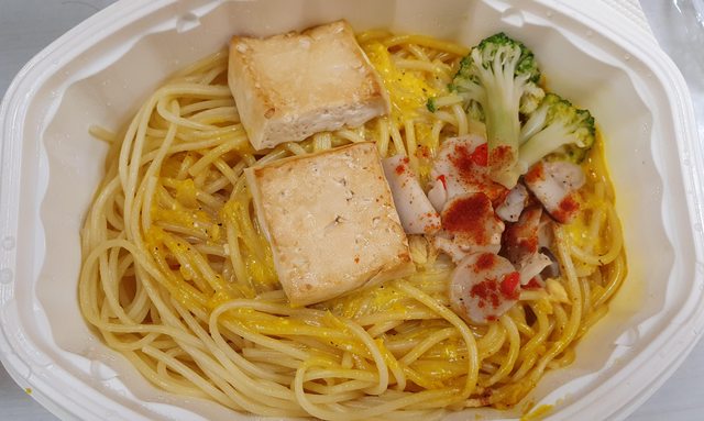清晨吃超商的鹹蛋黃醬義大利麵 89元