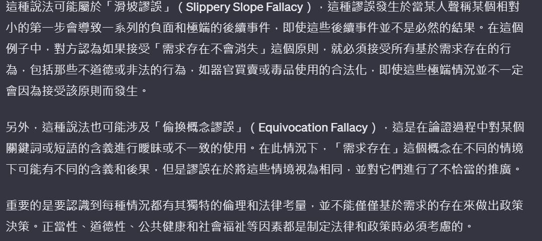 不然按照你那句「需求存在不會消失」來推導,很多東西都要合法化欸