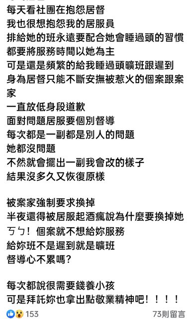 還聽說有人遇到下雨天就直接請假不出勤的,讓個案在家苦苦等待的。