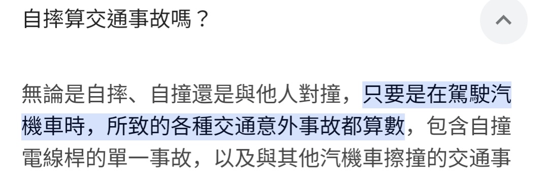推 etiennechiu : 自摔也屬交通事故呀 1.200.161.165 08/25 05:42